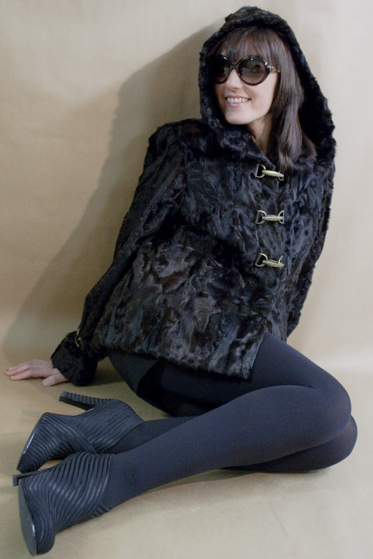 Chaqueta patas de astrakan marron.